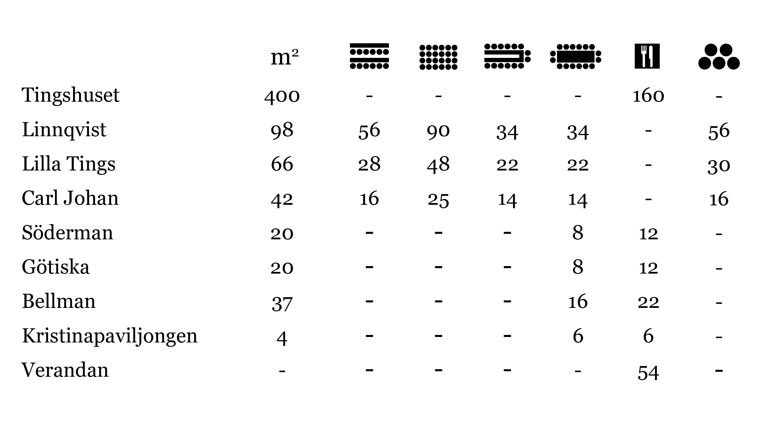 Tingshuset är våran största lokal och kan öppnas upp till Lilla Tings, Linnqvist och Carl Johan. Tingshuset passar till större middagar, fester och bröllop.
